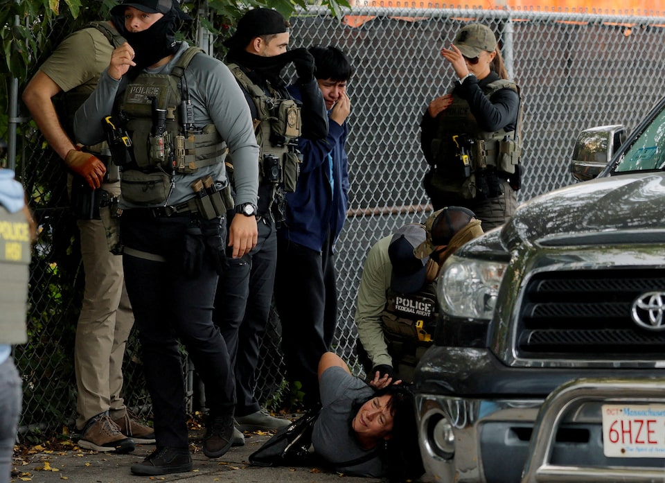 26 सितंबर, 2025 को अमेरिका के मैसाचुसेट्स के चेल्सी में एक आव्रजन प्रवर्तन छापे के दौरान, अमेरिकी मार्शल, एफबीआई एजेंट और एचएसआई एजेंट सहित संघीय एजेंट एक महिला को हिरासत में लेते हैं, जबकि उसका बेटा उसके बगल में प्रतिक्रिया कर रहा है। एजेंटों ने बाद में महिला को घटनास्थल पर ही छोड़ दिया क्योंकि […]
