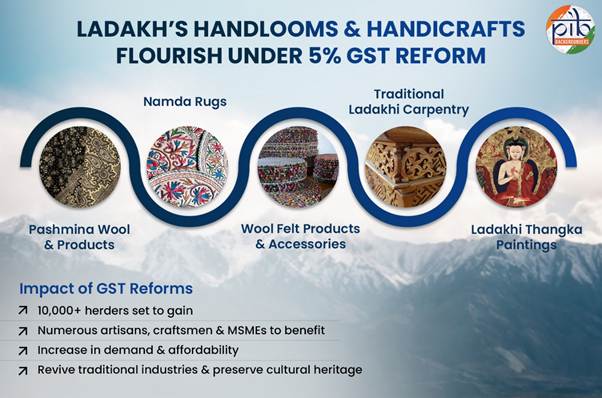लद्दाख की अर्थव्यवस्था अपने अद्वितीय भूगोल, संस्कृति और शिल्प कौशल में गहराई से निहित है। यहां पारंपरिक आजीविका उभरते पर्यावरण के अनुकूल उद्योगों के साथ जुड़ी हुई है। उच्च गुणवत्ता वाले पश्मीना ऊन और खुबानी के बागों से लेकर जटिल थांगका पेंटिंग और टिकाऊ पर्यटन तक, प्रत्येक क्षेत्र क्षेत्र के कौशल और विरासत को दर्शाता है। उत्पादों और सेवाओं की विस्तृत विविधता की श्रेणी में हाल ही में जीएसटी में कटौती से लद्दाख की समृद्ध अर्थव्यवस्था पर भी असर पड़ेगा और इससे कारीगरों, किसानों और छोटे उद्यमों को राहत मिलेगी। साथ ही ये सुधार आजीविका सृजन, सांस्कृतिक संरक्षण और लद्दाख की अर्थव्यवस्था के सतत विकास का समर्थन करेंगे। हथकरघा पश्मीना […]